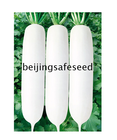 简介:耐暑性强,根皮洁白,商品性好的保鲜出口型品种!特性:1.草姿半直立,板叶为主,45天后花叶渐多,抗病性好。2.根皮光滑且全白,有光泽,无青肩,圆直筒型,根长26-30cm。3.耐湿及耐高温性强,播种后55天