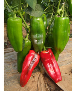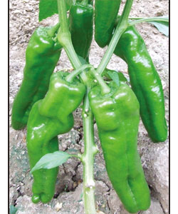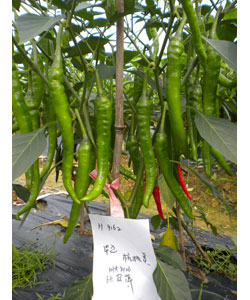 简介:丰收一号牛角椒新品种,高抗病毒,果长20-22cm,果粗4-5,单果重90-120克。皮厚,耐贮运。This is the buffalo and cow horns pepper new variety, high anti-virus, fruit long 20-22cm, fruit t