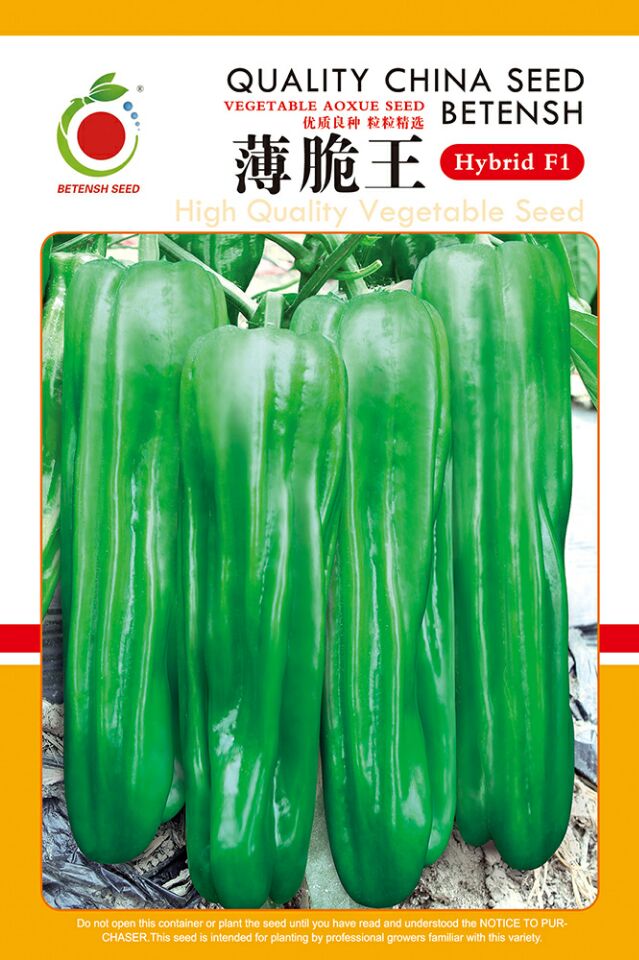 简介: 荷兰原种进口,早熟品种,耐低温,杂交一代,分枝性好,果粗4--5厘米,长15--18厘米,翠绿色,果面有褶皱,口感好,皮薄味辣,市场畅销,抗病性强,亩产4000---4500公斤,耐运输,适宜早春大棚,温室,地膜