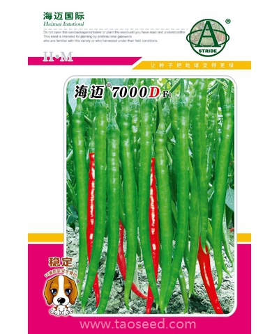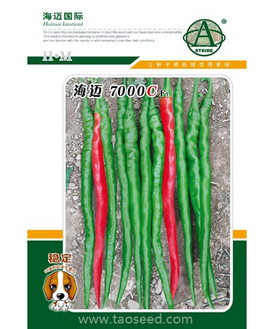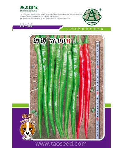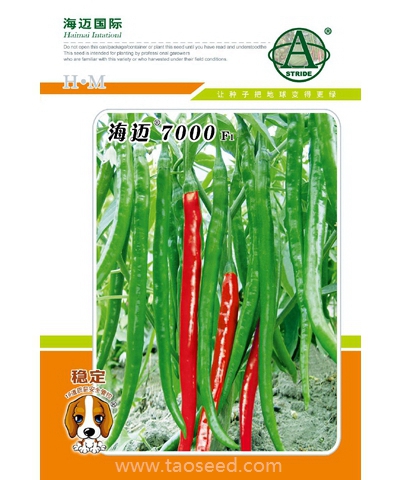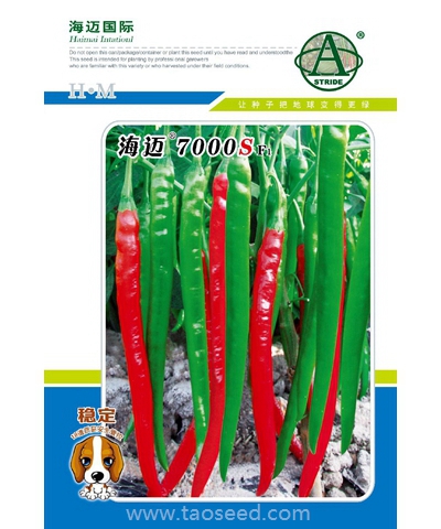 简介:海迈7000S主要特征:1、早熟,嫩果绿色,皮薄,成熟果鲜红发亮,果面光亮,果型顺直,辣味浓香,商品性好,连续挂果能力强。2、该品种长势强,耐低温弱光,较抗疫病、病毒病等多种病害,适宜保护地、露地栽培