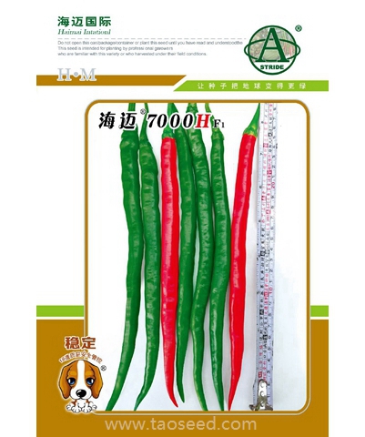 简介:主要特征:1、早中熟,膨长速度快,皮薄超大牛角椒。2、商品果嫩绿色,皮薄肉厚,品质好,果长约24-29厘米,横径约5厘米,单果重约180-350g。3、高抗病毒病、疫病、炭疽病,抗逆性强,耐贮运,亩产鲜椒约海迈