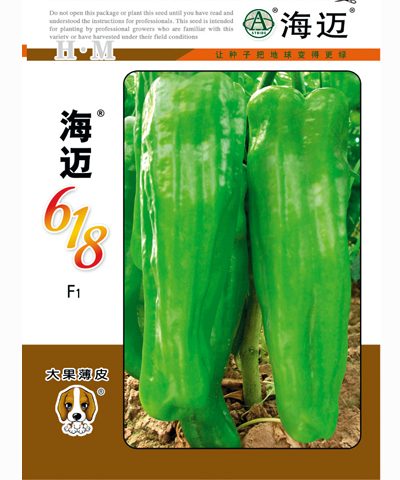 简介:1、早熟,特大粗牛角椒,膨长速度快。前后期产量均高。 2、商品果深绿色有光泽,果长约20-26cm肉厚0.45cm,果面光亮顺直,皮薄肉脆,菜贩特喜欢,单果重约150-280g,亩产鲜椒约8000-15000斤。3、综合抗病