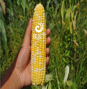 简介:温带型高品质黄白粒超甜玉米; 全生育期约75天,株高190厘米左右,穗位高约75厘米; 鲜苞重约400克,穗长18厘米-20厘米,穗行数12-14居多,黄白比例佳,色泽差距明显,有光泽,无秃顶;穗形