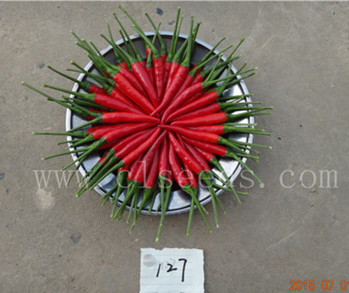 | 简介:中熟单生朝天椒类型,一代杂交,株高100厘米。叶片小,叶色浓绿;果实锥形,果长4-6厘米,果宽1.3厘米,果型生长整齐一致,青果颜色翠绿,红果颜色鲜红亮丽。适应于集中采收,果型优美,辣味强,产量高,商 |