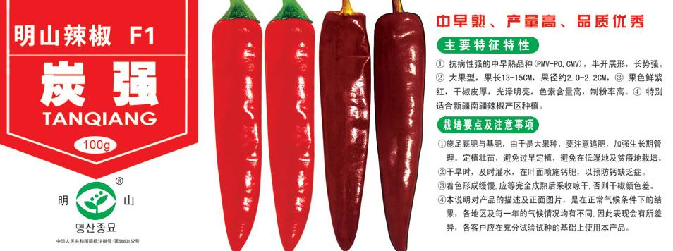 简介:极早熟,杂交一代,抗病性特强,连续坐果能力强,茎杆粗壮红果鲜红,果长28-32厘米,果径约3.5厘米,辣味浓香,平均单果重约60克。