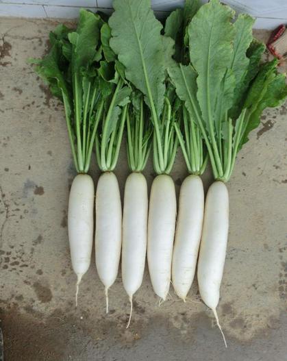 简介:日本最新杂交的耐高温、纯板叶的白萝卜品种。耐热性强,品质好,糠心晚,圆柱收尾,商品性佳。适合初夏至中秋季节播种,播种后约50天左右可以采收,根长约35cm,根茎6cm,根重700g。