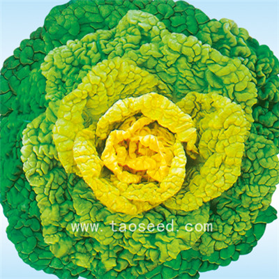 简介: 杂交种,叶片近似圆形,叶面皱缩,心叶浅黄,外叶深绿色,霜打后心叶变金黄,叶柄雪白、扁平,单株重250克。