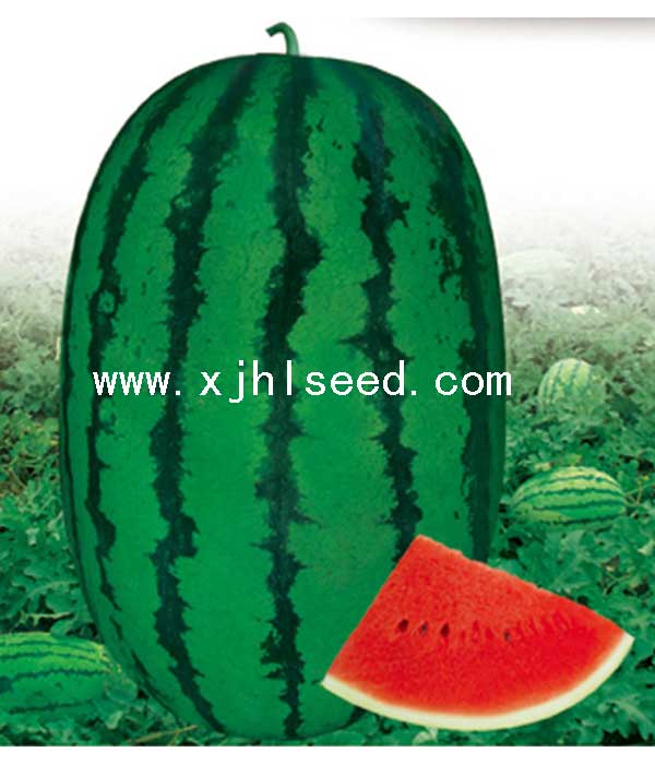 简介:中熟品种,开花至成熟33天左右,耐枯萎病,耐重茬,纯黑皮,果实椭圆型,易坐果, 果型整齐,果肉大红,肉质细脆多汁,中心含糖12度,单果重6-9公斤,耐贮运。