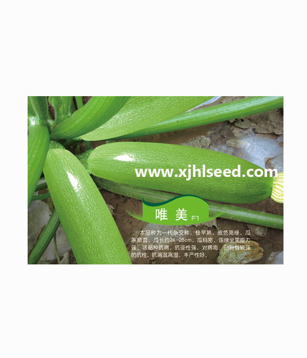 简介:杂交一代西葫芦品种,中熟,果皮翠绿色,瓜条顺直,整齐,长柱型,瓜条长26-30厘米,粗6-8厘米,长势旺,抗逆性强,连续座果能力强,采收期长,产量高,耐低温弱光,适合日光温室越冬、秋延保护地栽培