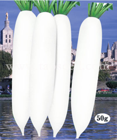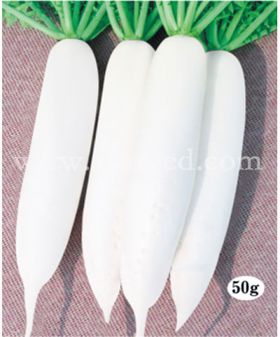 简介:1、根皮纯白,皮厚,很少发生须根及裂根。2、适合早春保护地和高冷地栽培。3、草姿开展,叶数少,适于密植,抗抽苔,不易糠心。4、肉质清脆,有甜味,口感好。5、播种后60天采收,单根重1.4-1.6kg,可延期收获