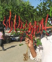 简介: 供高产辣椒种“邯优尖辣椒”是邯郸市农科所从优质鸡泽羊角椒品系选育而成,椒长15-20厘米,果皮紫红色,肉厚、辣味浓、抗病性好。一般亩产4000-5000斤