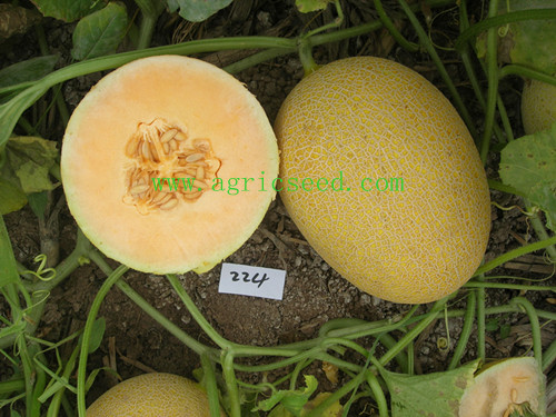 简介:精品小果型哈密瓜,早熟品种,全生育期70-75天,果实颜色转黄较快,果实椭圆形,果皮金黄,细密全网纹,桔红肉,品质佳,平均单瓜重2.5公斤,中心折光糖含量16.5%,产量高。