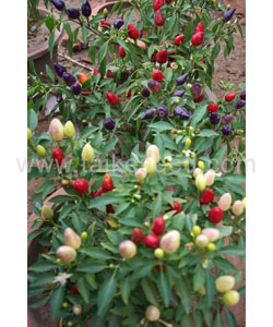 简介:特性:五彩椒又名朝天椒、五彩辣椒,是辣椒的变种,为茄科多年生半木质性植物,但常作一年生栽培。株高30-60厘米,茎直立,常呈半木质化,分枝多,单叶互生。花单生叶腋或簇生枝梢顶端,花白色,形小不显