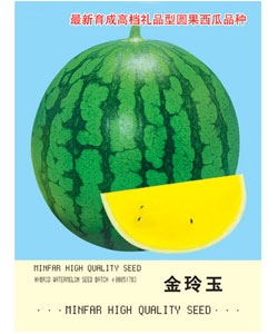 简介: 瓜圆形,瓤色鲜黄,含糖量高,风味极佳,口感甜美,市场售价高,果个大、高产,综合效益远高于其它普通西瓜。