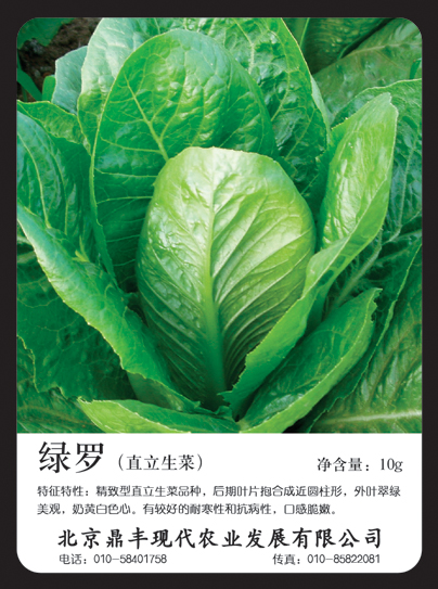 简介:绿萝—直立生菜 精致型直立生菜品种。叶片抱合成近圆柱形,植株高20-30cm。长势整齐一致,外叶翠绿美观,奶黄白色心。有较好的耐寒性和抗病性,口感更脆嫩。 &n