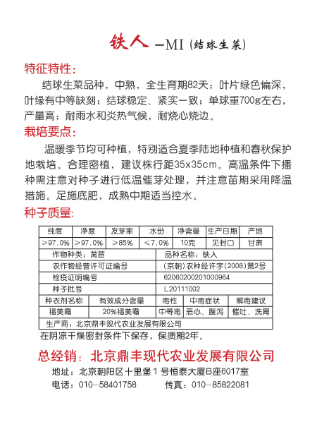简介:鼎丰一号:中早熟品种,定植后70天左右可采收,花球圆弧形,蕾粒细密,株型紧凑,抗病性强,产品适于鲜销和加工,适应性强,主要用于春、秋两季生产。www.apexseed.cn北京鼎丰现代农业发展有限公司地址