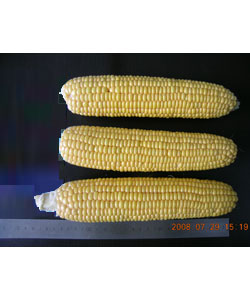 简介:北京地区春播从出苗至采收83天,属超甜型的玉米,株型半紧凑,叶色淡绿,株高240厘米,穗位75厘米,花丝绿色,果穗筒型,结实饱满,穗长22-25厘米,穗粗5厘米,平均行数15行,行粒43,粒深1.2厘米,籽粒排
