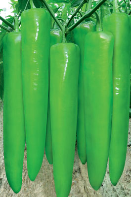 简介:早中熟品种,抗病性强,高抗病害,抗高温,耐潮湿,长势旺盛,座果率高。果实黄绿色,羊角型,特光亮顺直,皮薄肉厚,质脆嫩,食中无渣,辣味适中,红果鲜红,商品性特佳。果长26厘米,果粗4.0厘米,单果重90