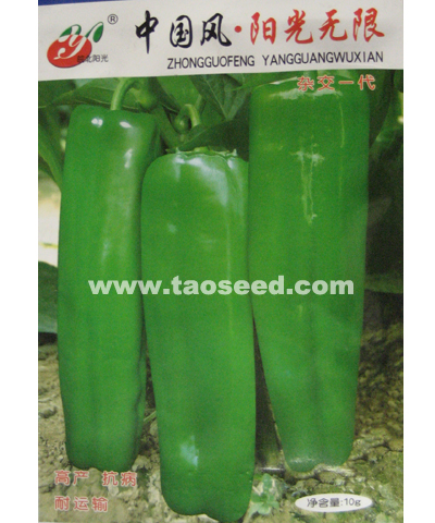 | 简介:2006年隆重推出的中国风系列新品种——阳光无限,果更大、产量更高,单株克结果150g以上的大果15个以上,亩产比普通辣椒的产量增产近一倍。中早熟,始花节位9节,株型紧凑,座果率高,膨果 |