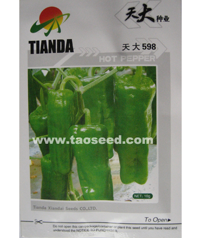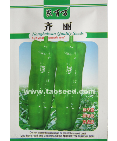 | 简介:一代杂交,中熟、高抗病,耐湿,耐热,植株中等,果粗长羊角形,果长24-28cm,宽3.5-4cm,一般单果重90克左右,果绿色,果面光亮,椒条顺直,肉厚,辣味浓,商品性特好,连续座果能力强,产量高,亩产5000kg, |