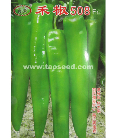 | 简介:三交种,2008年最新品种,比久红二号果长、果大。中早熟、特大长果型粗牛角椒,果皮光亮绿色,枝叶带茸毛,抗病性强,果长20-26cm,株高60cm,果宽5.5-6cm,单果重150-180g左右,大果可达280g以上,辣味中 |