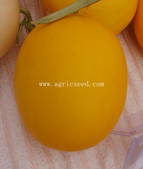 简介: 精品甜瓜品种,中早熟,植株长势中等。果实高圆至短椭圆形,果皮红黄皮,光滑,美观,果肉桔红色,肉质脆,细腻,甜,品质佳。含糖量16%以上,单瓜重约2公斤。抗病力较强