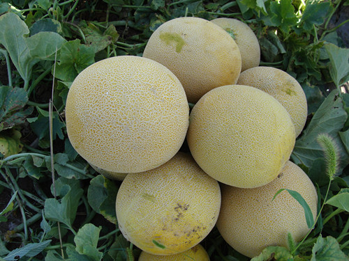 简介:晚熟,果实发育期40-50天,果型椭圆,果实颜色墨绿皮上覆全密网纹,桔红肉,肉质较脆,单果重4-6公斤。含糖12%-13%。较抗病。