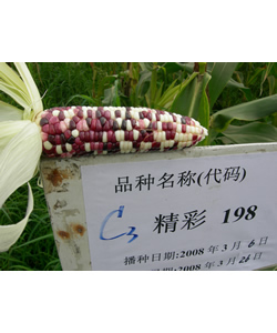 简介:株型半紧凑,高约220CM,穗位100CM,果穗锥形,长17-20CM,粗约4.8CM,穗行14-16行,籽粒紫红、紫黑、白相间,排列整齐,一般无秃尖。该品种柔嫩性好,粘、甜、清香,皮薄,风味独特,特别适合鲜食及速冻保鲜