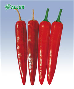 | 简介:特征特性:1. 长势旺盛,抗病性强,连续座果能力好,产量高。2. 干椒品质优秀,鲜椒保鲜期长,果色鲜艳,商品性超群。3. 大果型,果长15-17厘米,果粗1.6-1.8厘米,单果重14-16克,优质品率高,出口内销皆 |