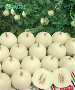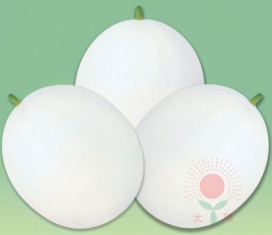 简介: 早熟,全生育期85天(单瓜发育35天),早春栽培,极抗枯萎病,株生生长中等,果实高圆型,单瓜重通常达2公斤,大果3公斤。果皮雪白光滑,果肉桔红色,含糖17度左右。成熟时给人一种白里透红高雅的感觉