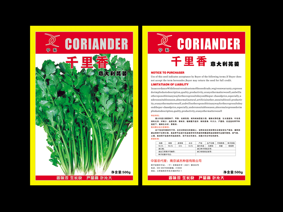 简介: 国外引进大叶香菜品种,耐抽薹,耐热,耐寒,生长速度快,株高30-35厘米,叶片油绿色,纤维少,香味浓,品质优,产量极高,是反季节栽培的理想品种。