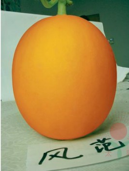 简介: 一代交配,早熟,授粉后32-35天成熟,植株生长强健,极抗病,果实椭圆,皮色桔黄,比一般黄皮品种皮色更深,果面光滑细腻,美观整齐,果肉雪白,松脆多汁,在光照、温度及水肥管理适当的条件下,单瓜重