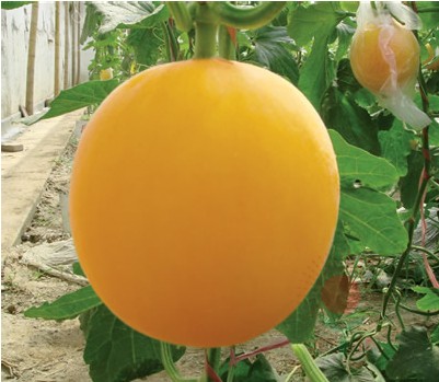 简介: 是我公司最新育成的桔红皮白肉大果、高糖的甜瓜品种。 特征特性:早熟,授粉后30天成熟。生长强健,具有极好的座果习性。果实高圆至短椭,皮色桔黄带红,光滑无棱沟,整齐美观,在皮色上光滑度上比