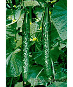 简介:特征特性。生长势强,第1雌花始于主蔓3--5节,每隔2--4节出现一雌花,前期主蔓结瓜,中后期以侧枝结瓜为主,雌花节多为双瓜。瓜短筒形,瓜色深绿一致,有光泽,无花纹,瓜把短,刺瘤稀,白刺,无棱。瓜长1