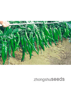 简介:特征特性:植株生长势强,始花节位12节左右。连续结果性强,果实羊角形,纵径16cm,横径2.45cm左右,肉厚0.21cm,2~3心室,果面光滑、无皱,腔小,果色绿,单果重32g,味辣,商品性好。耐热、耐旱、抗病性强,