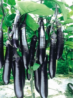 | 简介:早熟,抗黄萎病、疫病、耐热,株高约90厘米,开展度约60厘米,定植后50天可采收,果实长棒形,果最长可达50厘米,单果重可达250克,果皮深紫黑发亮,光泽度极佳,皮薄而坚韧,耐贮运,肉质松软,食味佳。 |