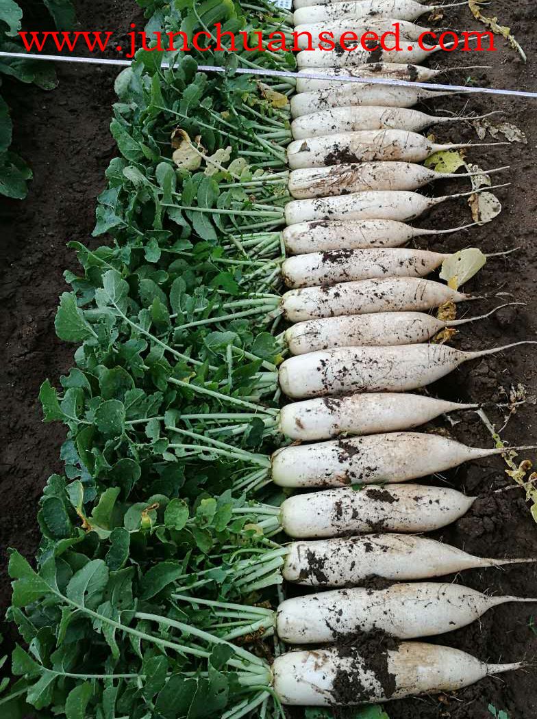 简介:适宜春、秋种值。最新杂交一代花叶品种,根部洁白,根形近圆柱形,收尾较好,曲根、裂根少,整齐度好。叶片半直立,可适度密植,产量高,种植后60天左右可采收,根长25cm左右,根径7cm,单根重1.4kg左右。生