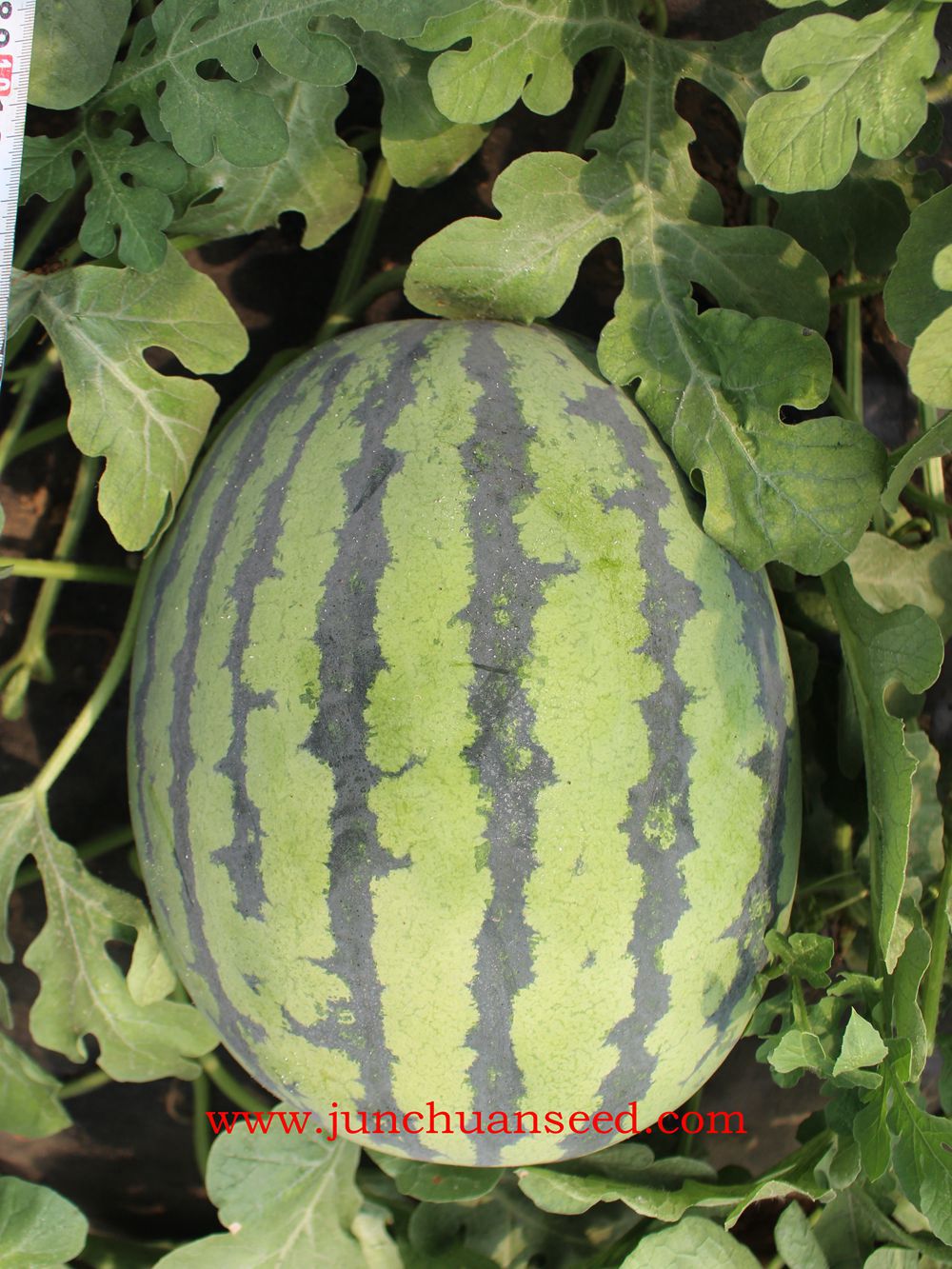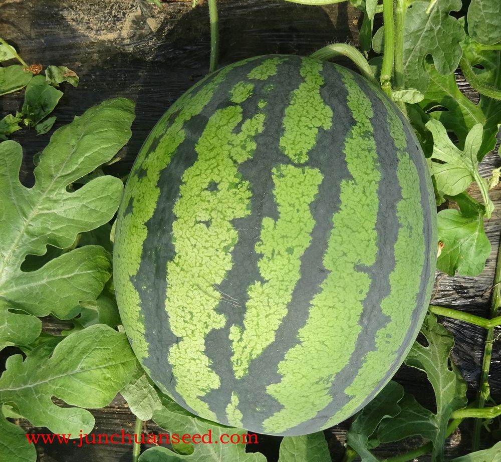 简介: 果皮绿色着墨绿条纹,条纹鲜明,外观秀丽的高圆型品种。座瓜性好,果实发育快,授粉后只需35天左右成熟。单果重7kg左右,中心糖度12度以上,梯度小,口感好。