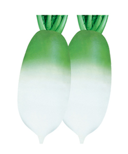 简介: 生长旺盛,叶片少,根膨大快,不易抽苔;根长圆筒形,根型美观,根皮光滑洁白,肉质清甜,口感好;单个重1.2-1.8公斤,不易糠心,极少发生歧根、裂根,早熟