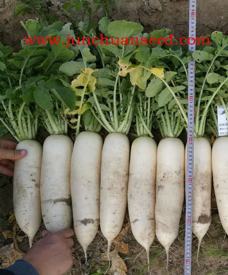 简介: 春秋种植的新类型品种,根部洁白,根形长圆筒,曲根、裂根少,叶丛半直立,种植后55天左右可采收,生长期内长期低温采收期延迟,可适度密植,产量高,根长30cm左右,根径8cm左右,单根重1.5kg。适宜早春