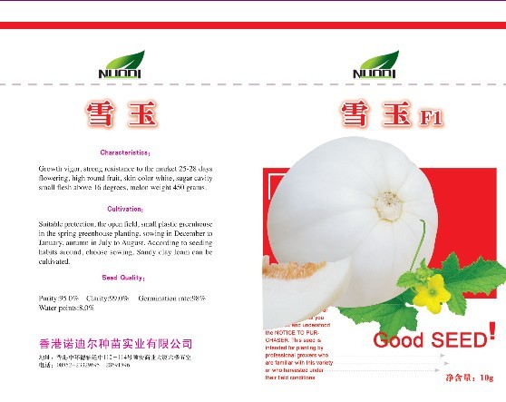 简介:雪玉特征特性:长势旺,抗性强,开花至上市25-28天,果实高圆形,皮色纯白,腔小肉厚含糖16度以上,瓜重450克。 纯度95% 净度99% 芽率98% 水份8%