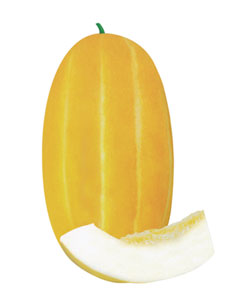 简介: 最新育成的杂交一代甜瓜品种,极早熟,从开花到成熟23-26天,果实长椭圆形,成熟果金黄色,具银白色条带,果肉洁白,肉质细脆,香味浓郁,单瓜重1.0-1.5公斤,