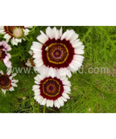 简介:花环菊为菊科、茼蒿属一、二年生草本植物。茎直立多分枝,株高30厘米至70厘米,叶二回羽裂。头状花序,花冠有红、粉、黄、白、紫等色,常二、三色呈复色环状,花期6月至9月。