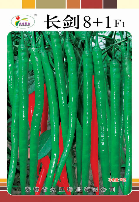 简介: 长剑8+1:早熟,株高55cm,分枝力强,果长28-30cm,长果可达30cm以上,果粗1.5-1.8cm左右,座果率高,连续座果能力强,单果重20g左右,果绿色,红果鲜艳,光泽度好,品质好。味辣,抗病性特强。采收期