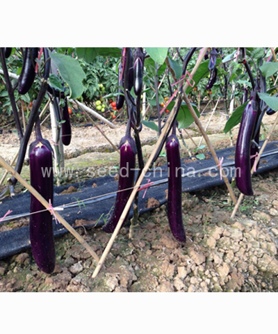 简介: 特征特性: v 中晚熟品种,植株生长旺盛,分枝结果多,株型紧凑,株高140-145厘米。 v 果实长条形,顺直,果肉结实,盛收期果长32-35厘米,果粗4.5-5厘米。单果重250-300克。深紫色,亮丽,光