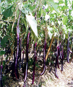 简介:紫彤:薄皮种品质佳,复花房可着果多,长度30-36cm,细长果,重量约100克,深紫色,果肉为白色,茄尾圆润,耐贮运、耐热强,抗青枯病强。