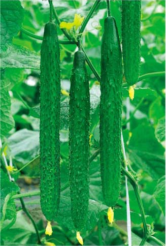 | 简介:早熟新一代杂交种,耐高温,早熟性、丰产性好,生长速度快。瓜色深绿,刺瘤适中,瓜把短,瓜条顺直,长可达40cm,味甜质脆,品质优,产量高。高抗霜霉病、白粉病、枯萎病,适宜春、夏露地及秋大棚栽培,是我国 |