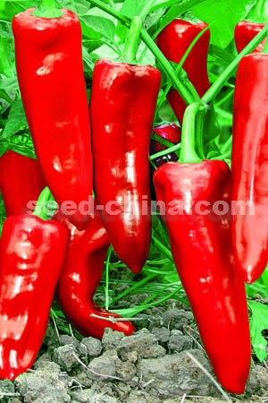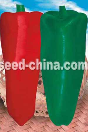 | 简介:特征特性: 早、中熟,株高50厘米左右,开展度60*60,早春栽培第8节开花,秋播7-9节开花。突出表现为果实特大。果长22-25厘米、粗6厘米、肉厚0.6厘米,粗牛角型,平均单果重150-180克,最大单果重可达 |