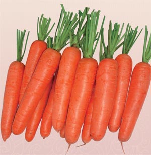 简介: 杂交一代胡萝卜品种,叶片直立生长,呈浓绿色,早熟,生育期90天,根圆柱形,皮、肉、芯三红,颜色深,着色快,形状好。根长20-22厘米,根重250克左右。根形特别整齐,表皮光滑,收尾好。根部吸