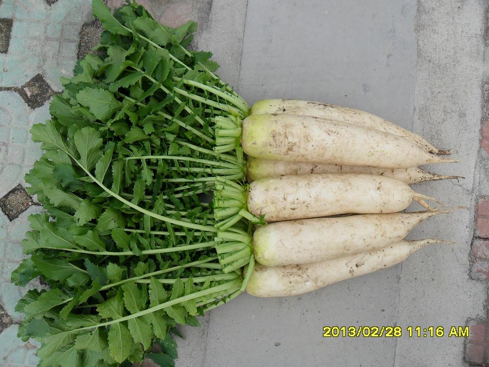 简介: 日本进口一代杂交种,耐抽苔,耐低温,产量高。播种后60-65天可收获。青首,收尾钝圆,根形好,肉质致密,口感佳。跟长35cm,根茎7cm,根重1.4-1.8kg,适合南北地区春秋栽培。75元/50克(罐)